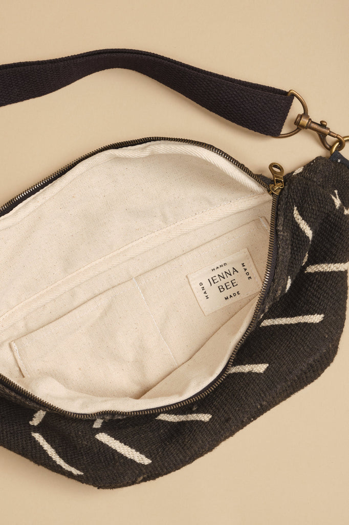 daily essentials and hands free. As with all of our products, it’s created to accompany you on all of your adventures and is perfect for travel. It's handmade with traditional African mud cloth and fully lined with natural canvas and two internal pockets for your essentials. It includes an adjustable, detachable cotton strap and a premium zipper guaranteed never to stick.